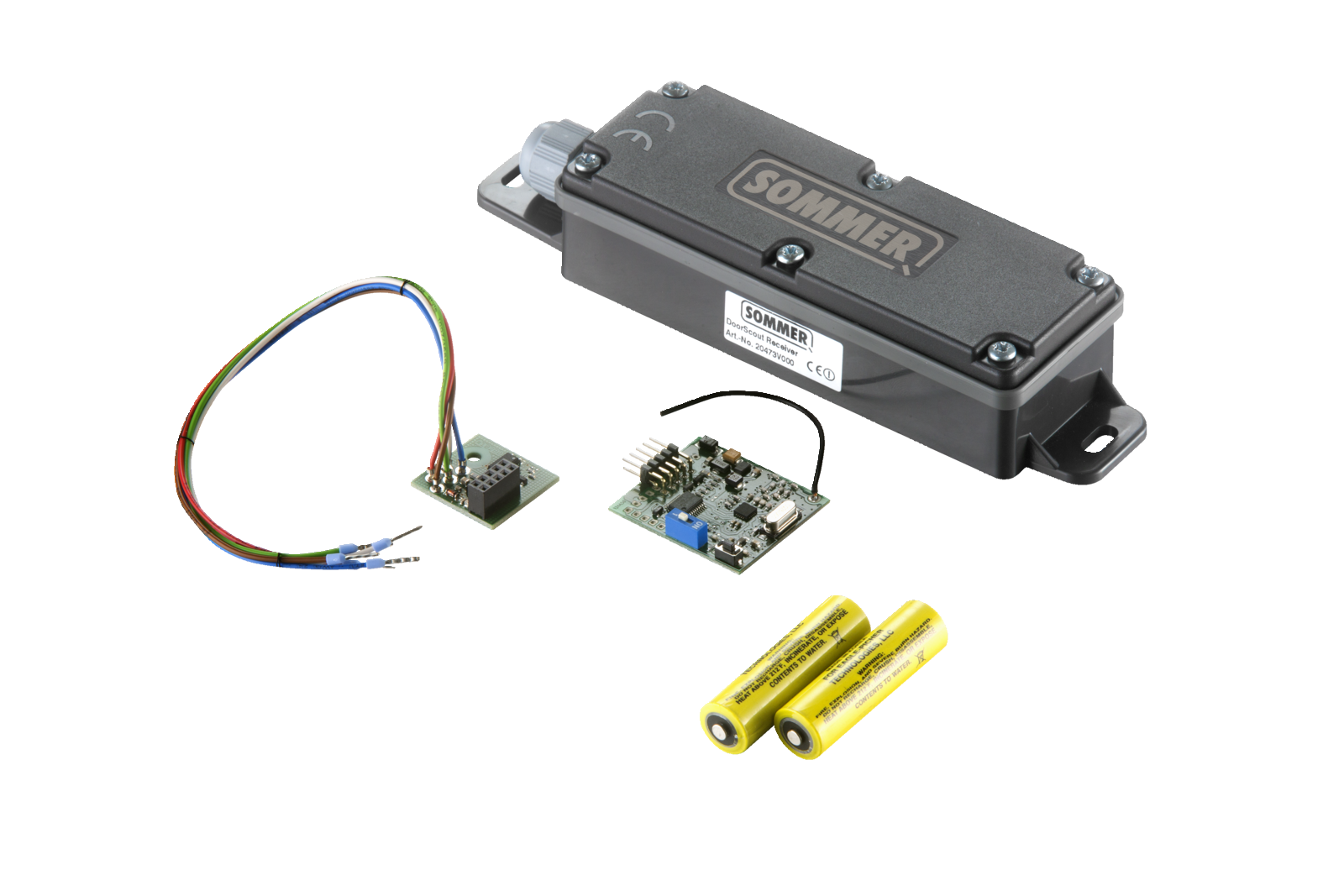 inkl. 1× Empfänger steuerungsseitig (RX), 1× Sender torseitig (TX), 1× Interface und 2× AA Lithium-Batterie