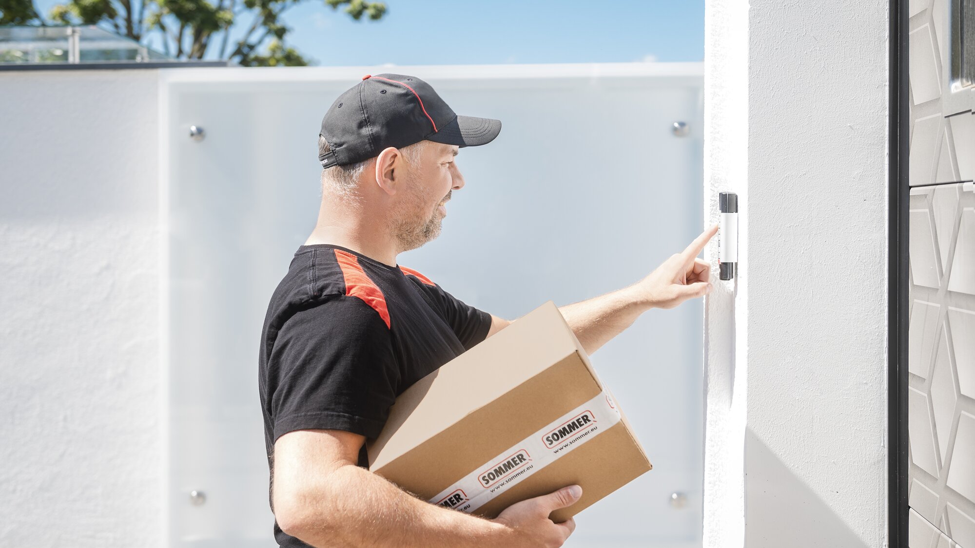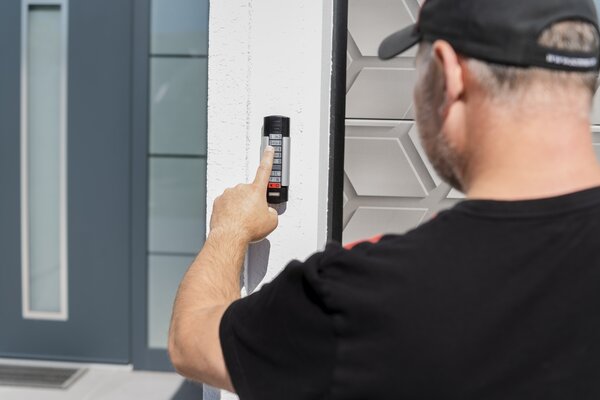 Die smarte Paketablage von SOMMER erlaubt es dem Zusteller ein Paket in der Garage abzulegen. Dabei kann die Öffnungshöhe des Garagentors individuell bestimmt werden. Es stehen zwei Sicherheitsstufen zur Auswahl: Die Toröffnung kann über die rote Taste oder einen individuellen Zahlencode erfolgen.