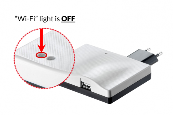 To check RESET has been successful check that “Wi-Fi” light is off.