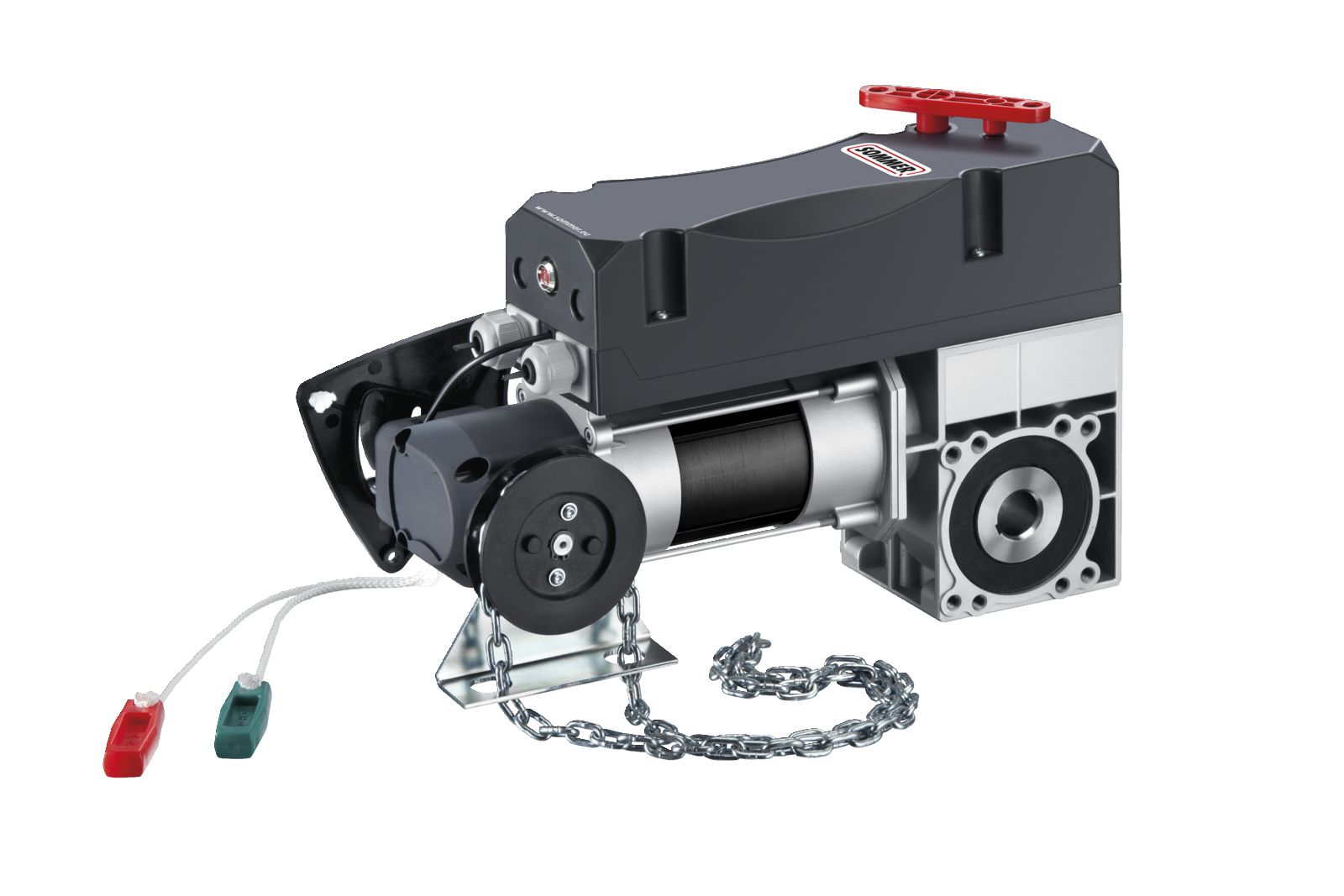 Catena di emergenza – Il sistema per la catena d'emergenza può essere ruotato di 180° nella griglia. In questo modo, è possibile adattare la posizione dell'argano alle condizioni locali. La catena può essere installata sul lato sinistro o destro.
