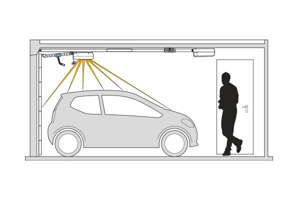 Sensor die de temperatuur en de luchtvochtigheid in de garage meet. Bij te hoge waardes gaat de garagedeur automatisch een stukje open om te verluchten. Zodra de optimale waarde bereikt is, wordt de deur opnieuw gesloten. Op regenachtige dagen wordt de condensvorming tot een minimum beperkt.