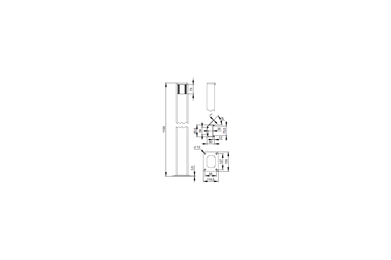 Post made of aluminium